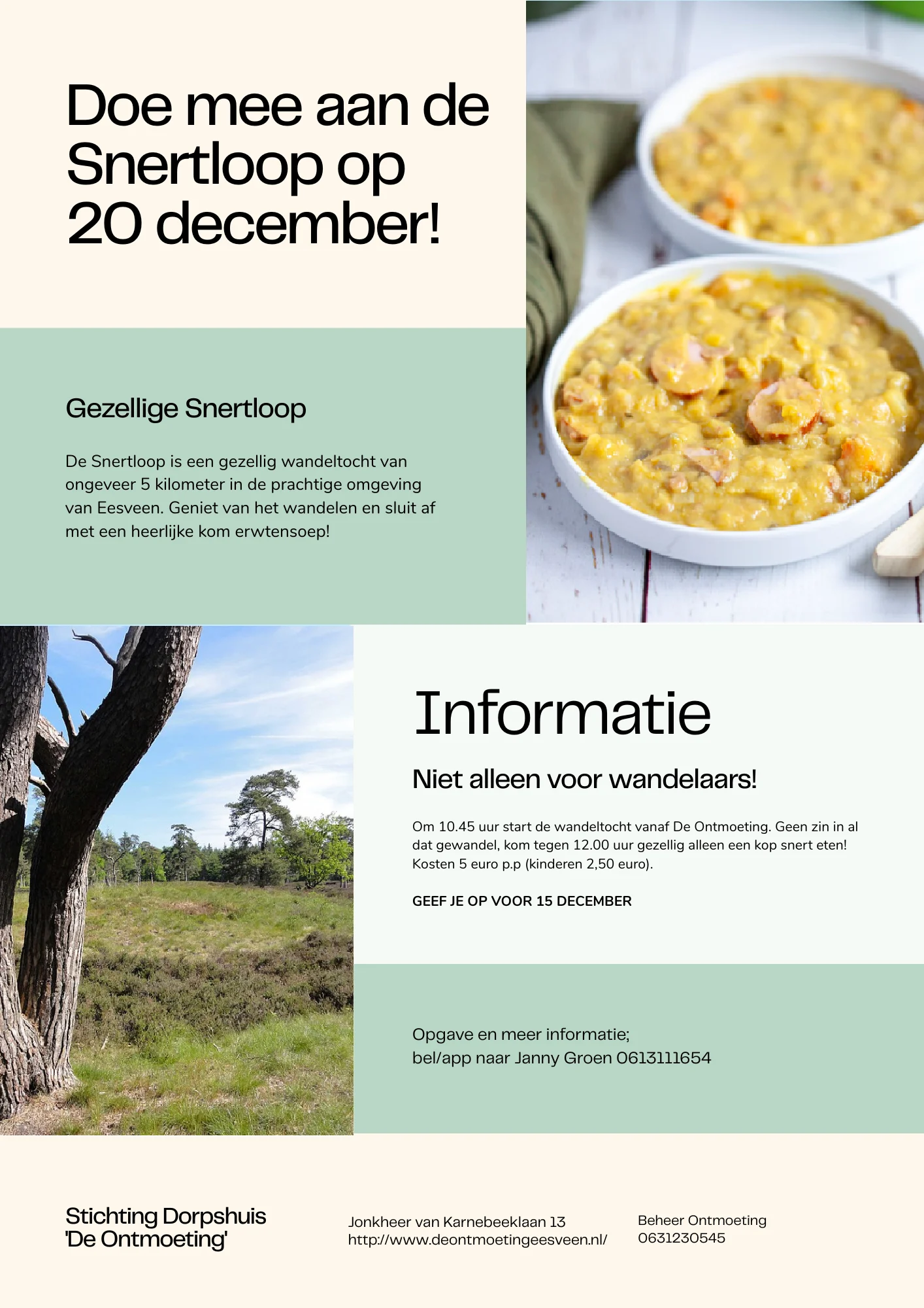 De Ontmoeting Van Karnebeeklaan 13, 8347 WD EESVEENDe snertloop is een gezellige wandeltocht op 20 december van ...